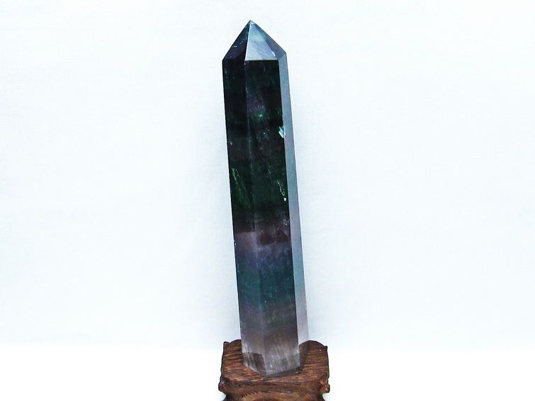 フローライト 六角柱 蛍石 ポイント 置物 原石 台座付属 一点物 152-2437