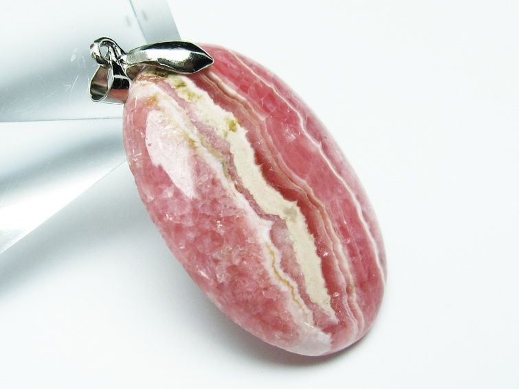 インカローズは、正式名称を「ロードクロサイト」といい、ギリシャ語で「バラ色の石」を意味します。バラの色のように美しい赤みを帯びたピンクの色で、白い縞が入り、石をカットした断面図がバラの花が開くような模様をしており、インカ帝国が栄えた時代アンデス山脈の鉱山より取れたため、名付けられました。
