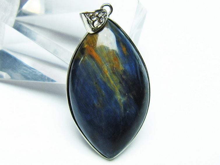ピーターサイトは、地殻変動により砕けたタイガーアイやブルータイガーアイ(ホークスアイ)が、石英(クォーツ)によって再結晶化した鉱物です。タイガーアイの様な繊維状のキャッツアイは見られませんが、渦巻いたような独特のマーブル模様はまるで油絵や絵画の様で独特の魅力を放っています。