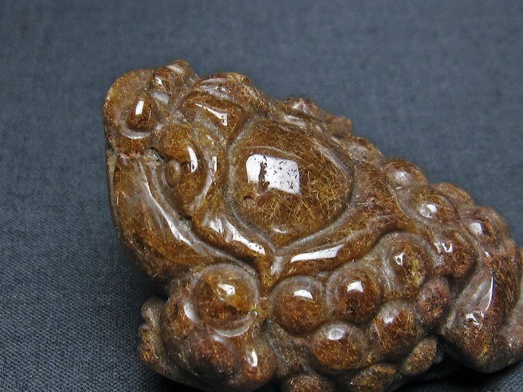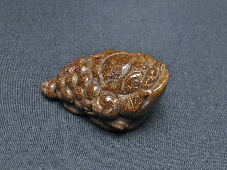 金針ルチル 金蟾 置物 手彫り 彫刻品 キンセン ルチルクォーツ 原石