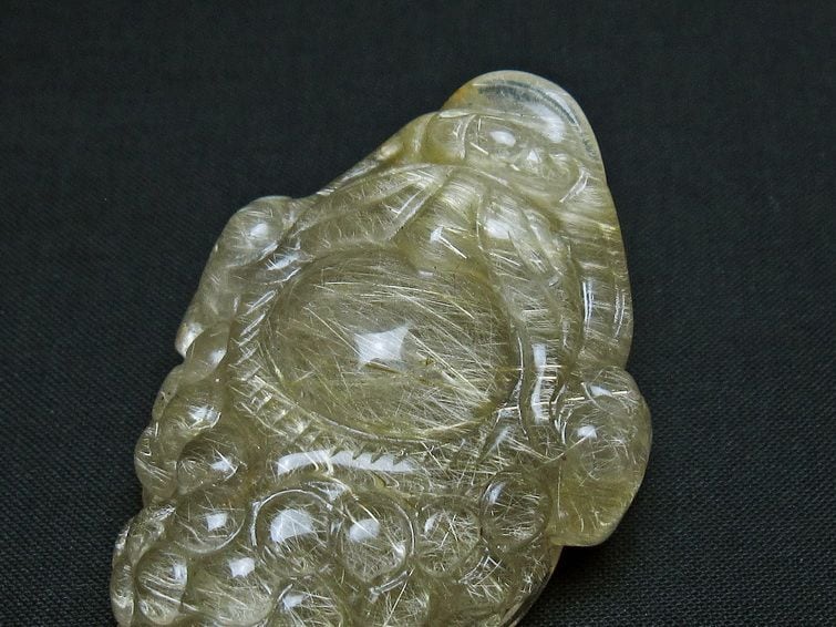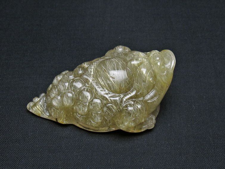 タイチンルチルクォーツ 手彫り 置物 キンセン 金蟾