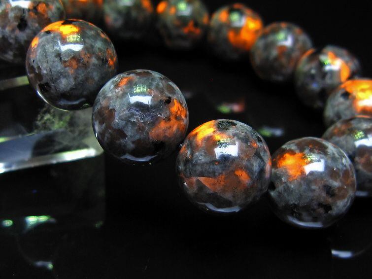 自然光の下では変哲の無い石ですが、ブラックライトなどの紫外線を照射すると強いオレンジ色の蛍光が確認できます。