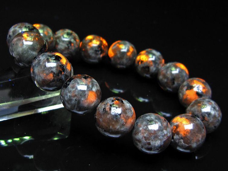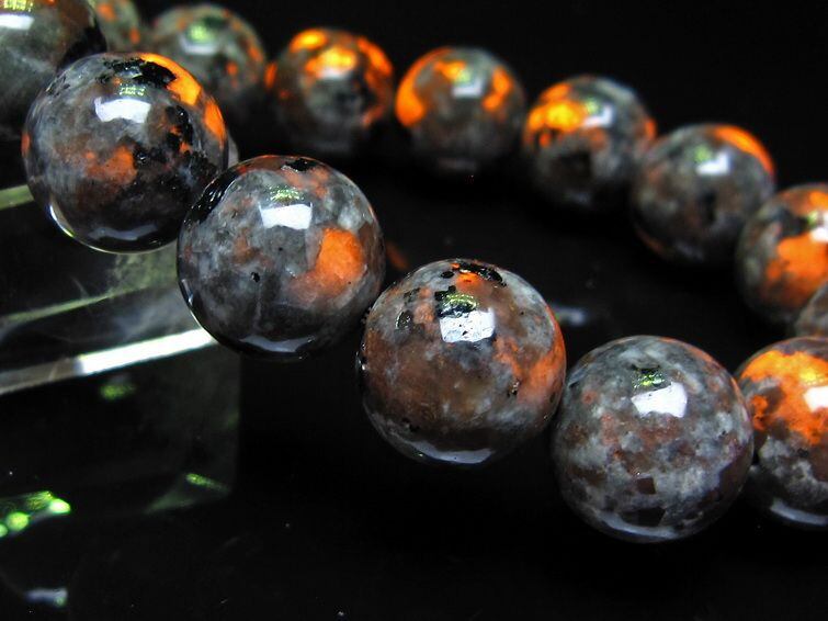 自然光の下では変哲の無い石ですが、ブラックライトなどの紫外線を照射すると強いオレンジ色の蛍光が確認できます。