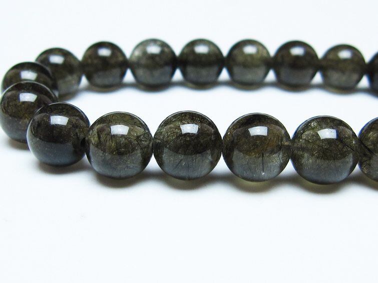 ブラックルチルクォーツ ブレスレット 9mm ブラックトルマリン トルマリネイテッドクォーツ 一点物 メール便可 [M便 1/10] 111-47025
