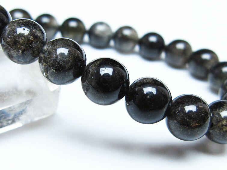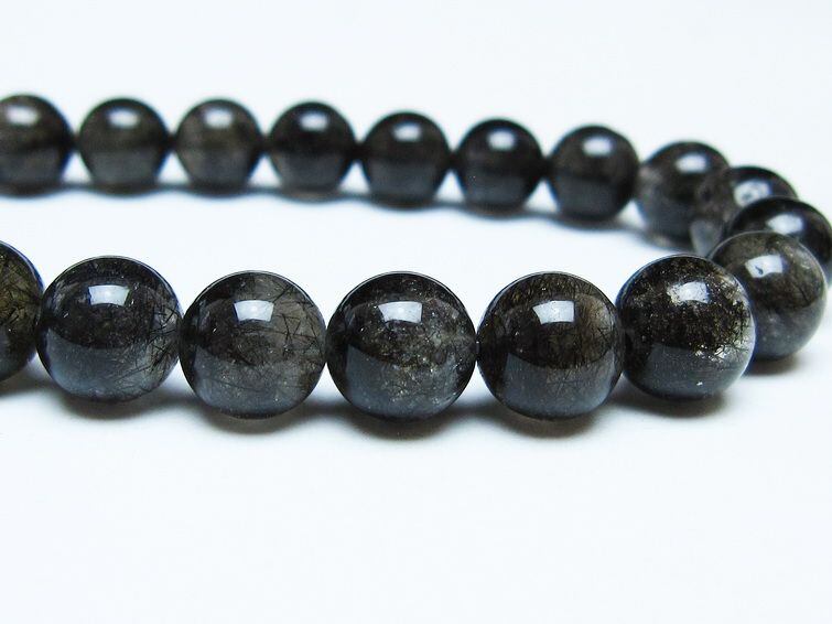 ブラックルチルクォーツ ブレスレット 9mm ブラックトルマリン トルマリネイテッドクォーツ 一点物 メール便可 [M便 1/10] 111-47088