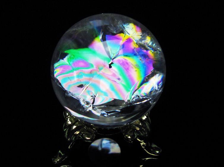 アイリスクォーツ 水晶 丸玉 虹入り 28mm 水晶玉 置物 スフィア 141-6926