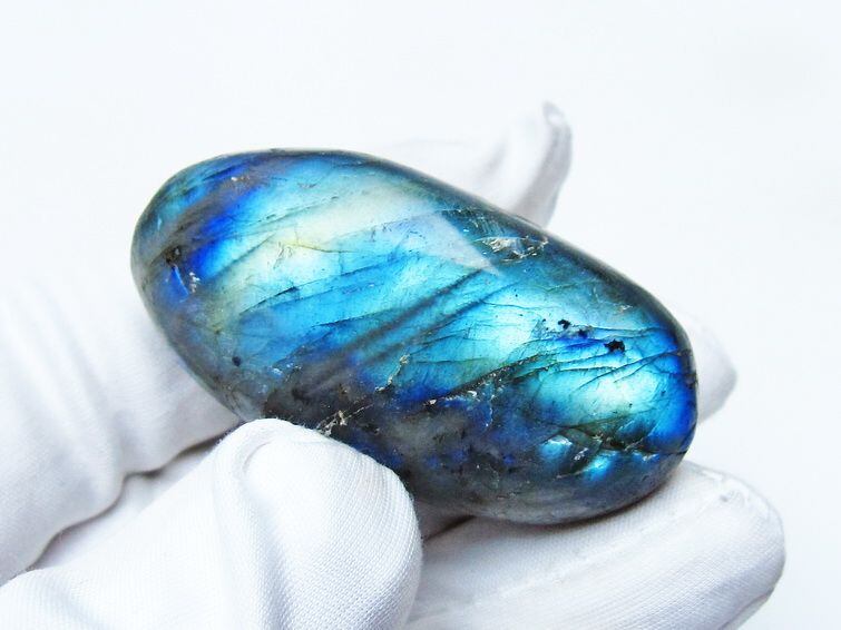 見る角度によって変化する「ラブラドレッセンス」は、神秘的な輝きと幻想的な色彩とが垣間見れる非常に美しい石です。