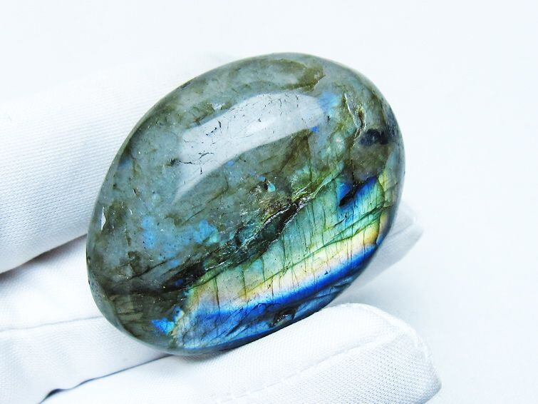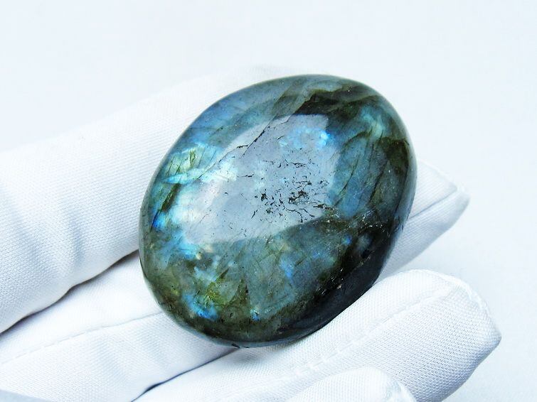 見る角度によって変化する「ラブラドレッセンス」は、神秘的な輝きと幻想的な色彩とが垣間見れる非常に美しい石です。