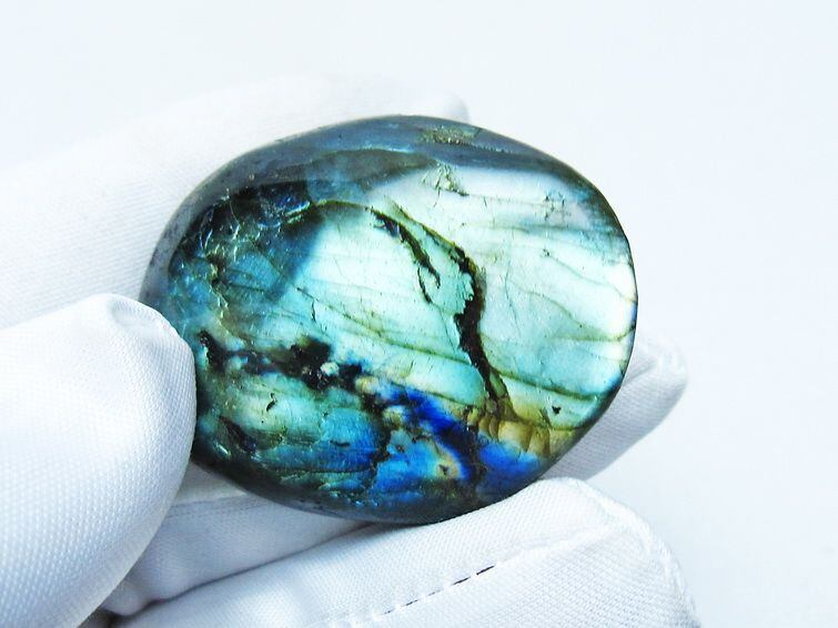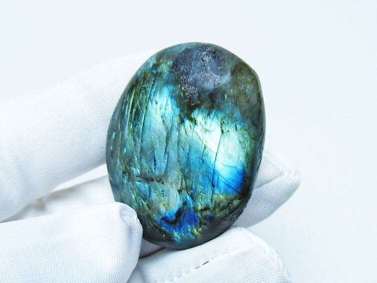 見る角度によって変化する「ラブラドレッセンス」は、神秘的な輝きと幻想的な色彩とが垣間見れる非常に美しい石です。