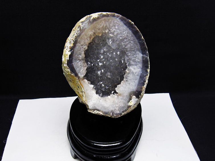 1.5Kg アゲート ジオード 原石 置物 台座付属 瑪瑙 メノウ 晶洞 一点物 181-4167