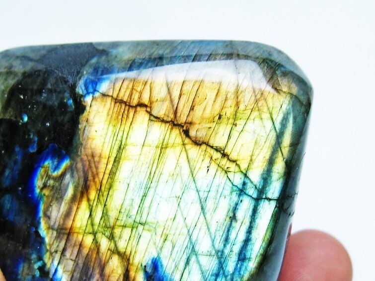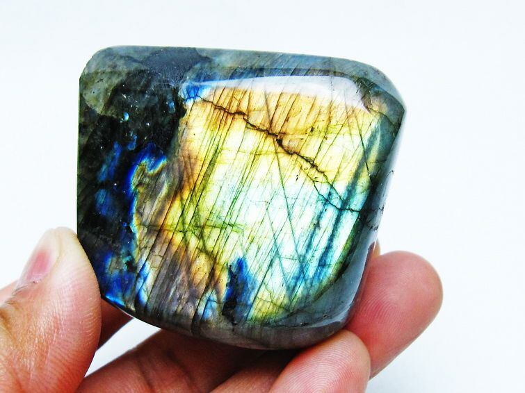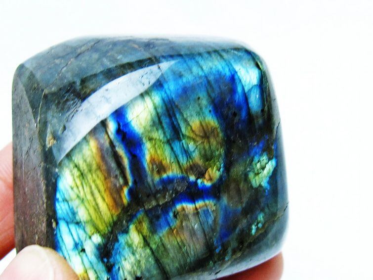 見る角度によって変化する「ラブラドレッセンス」は、神秘的な輝きと幻想的な色彩とが垣間見れる非常に美しい石です。