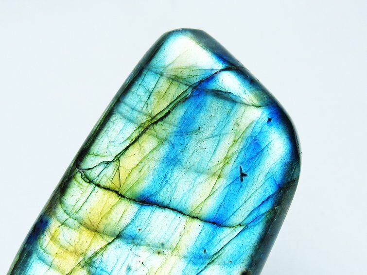 見る角度によって変化する「ラブラドレッセンス」は、神秘的な輝きと幻想的な色彩とが垣間見れる非常に美しい石です。
