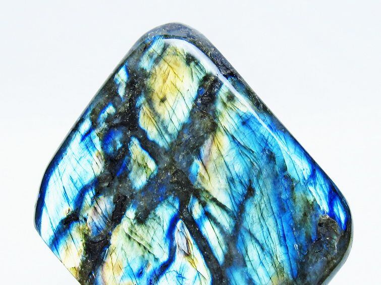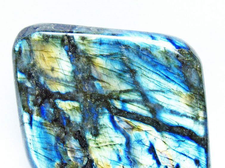 見る角度によって変化する「ラブラドレッセンス」は、神秘的な輝きと幻想的な色彩とが垣間見れる非常に美しい石です。