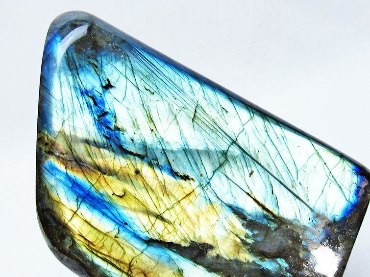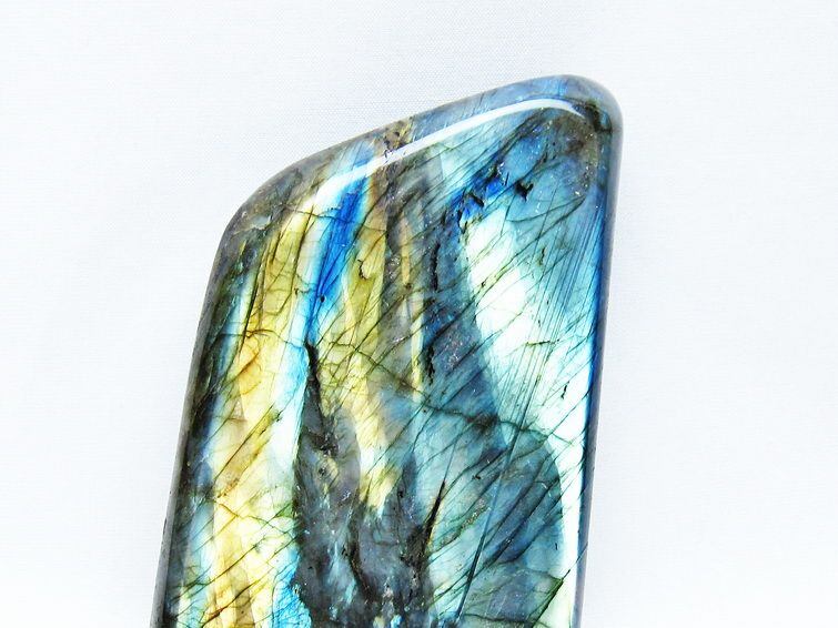 見る角度によって変化する「ラブラドレッセンス」は、神秘的な輝きと幻想的な色彩とが垣間見れる非常に美しい石です。
