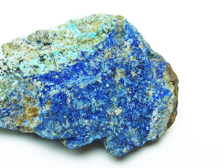 アズライトは世界各国で産出される銅の二次鉱物です。日本でも秋田県などで採掘されていましたが、現在は日本産のアズライトは数が少なく大変希少な逸品となっています。アズライトは古くから顔料や絵具として使用されてきました。古くはギリシャやエジプトで「天界と繋がる石」「天界に通じる神聖な宝石」とされ、宗教儀式や王族の装飾品にも使用されています。