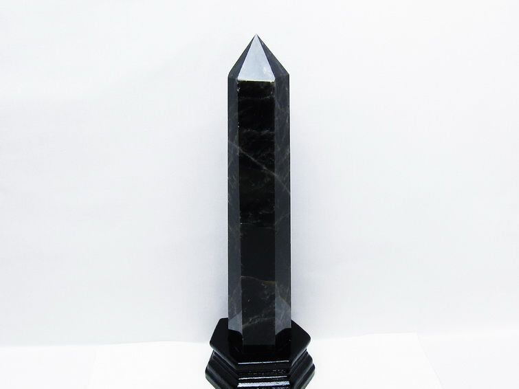 1Kg モリオン 黒水晶 六角柱 台座付属 一点物 152-4001
