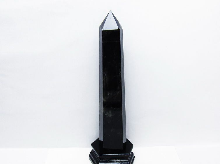 1.4Kg モリオン 黒水晶 六角柱 台座付属 一点物 152-4009