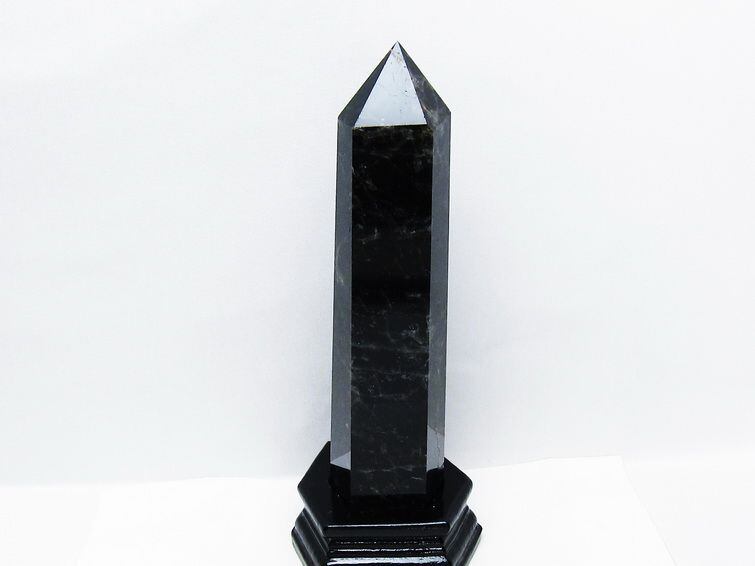 1.1Kg モリオン 黒水晶 六角柱 台座付属 一点物 152-4018
