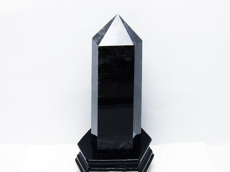 1.5Kg モリオン 黒水晶 六角柱 台座付属 一点物 152-4044