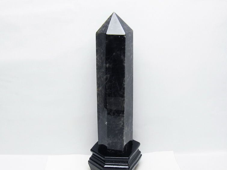 2.3Kg モリオン 黒水晶 六角柱 台座付属 一点物 162-417