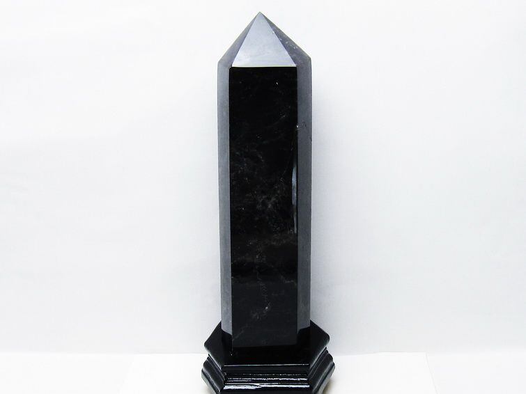 3.3Kg モリオン 黒水晶 六角柱 台座付属 一点物 162-425