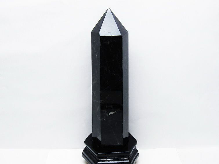 2.4Kg モリオン 黒水晶 六角柱 台座付属 一点物 162-427
