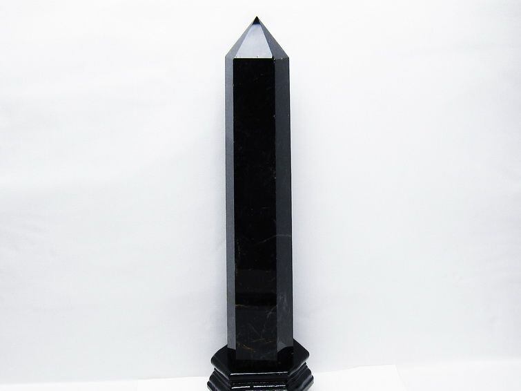 2.7Kg モリオン 黒水晶 六角柱 台座付属 一点物 162-431