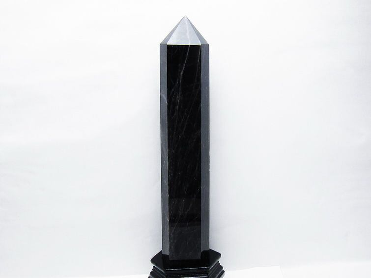 2.7Kg モリオン 黒水晶 六角柱 台座付属 一点物 162-434