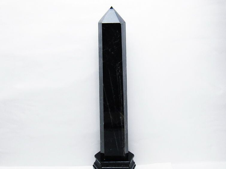 3.4Kg モリオン 黒水晶 六角柱 台座付属 一点物 162-435