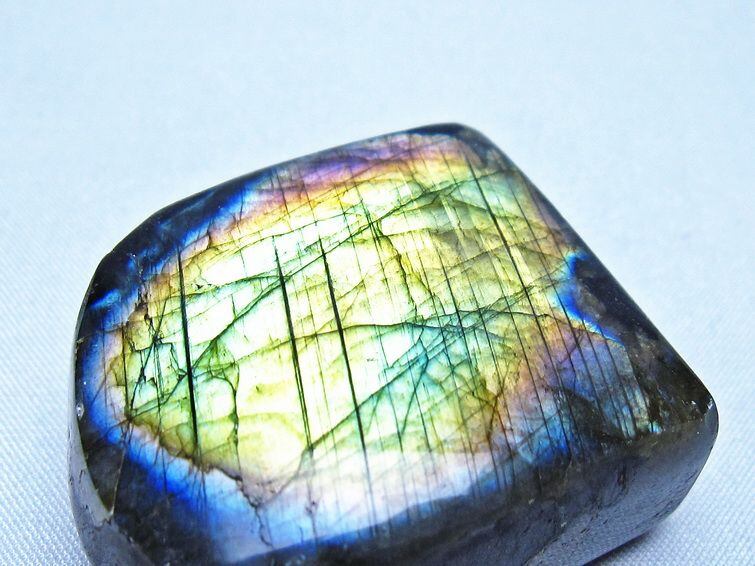 見る角度によって変化する「ラブラドレッセンス」は、神秘的な輝きと幻想的な色彩とが垣間見れる非常に美しい石です。