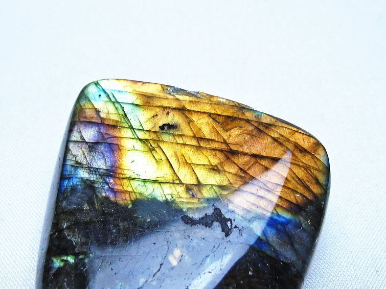 見る角度によって変化する「ラブラドレッセンス」は、神秘的な輝きと幻想的な色彩とが垣間見れる非常に美しい石です。