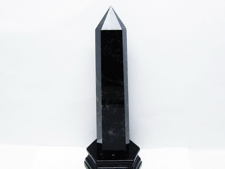 1.2Kg モリオン 黒水晶 六角柱 台座付属 一点物 152-4053