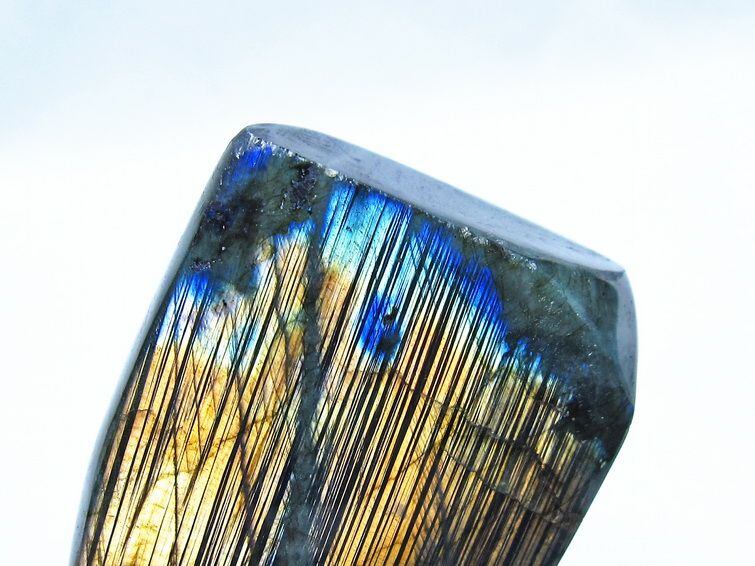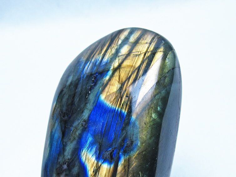 見る角度によって変化する「ラブラドレッセンス」は、神秘的な輝きと幻想的な色彩とが垣間見れる非常に美しい石です。