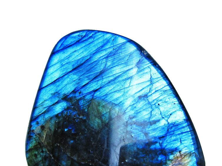 見る角度によって変化する「ラブラドレッセンス」は、神秘的な輝きと幻想的な色彩とが垣間見れる非常に美しい石です。