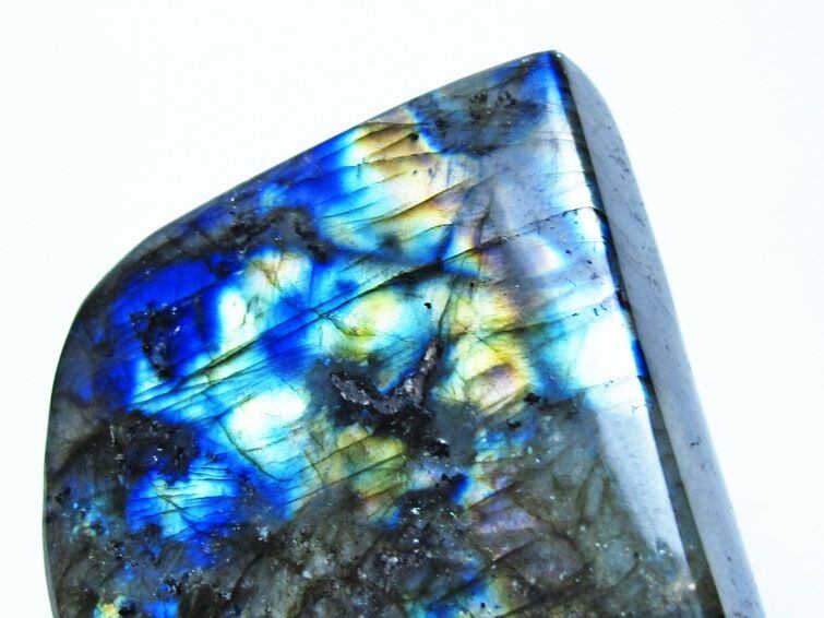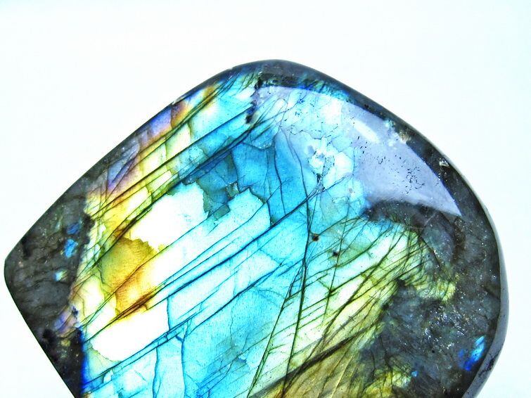 見る角度によって変化する「ラブラドレッセンス」は、神秘的な輝きと幻想的な色彩とが垣間見れる非常に美しい石です。