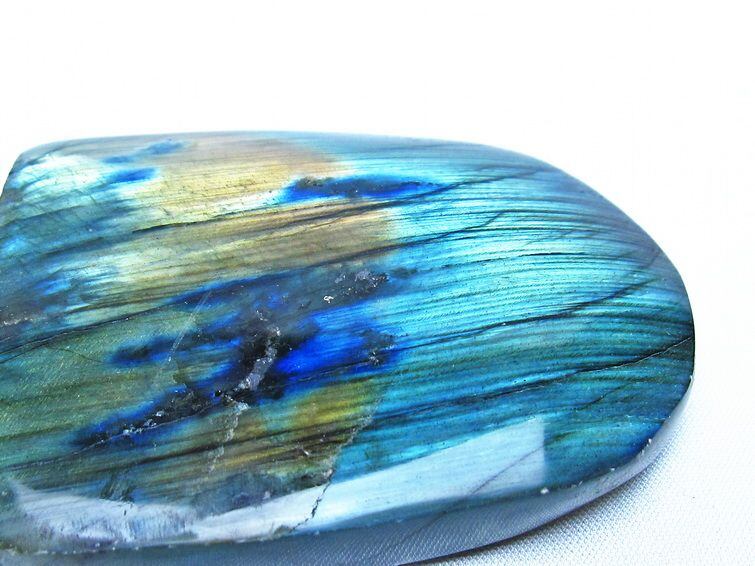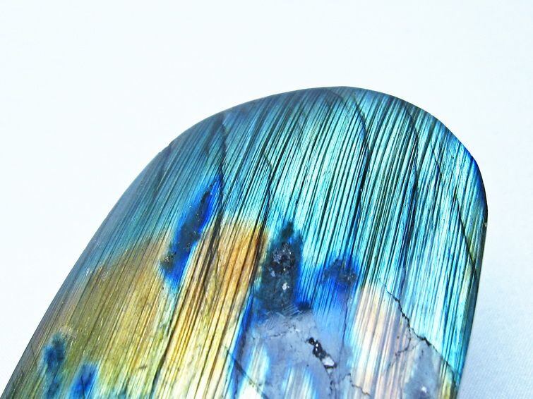 見る角度によって変化する「ラブラドレッセンス」は、神秘的な輝きと幻想的な色彩とが垣間見れる非常に美しい石です。
