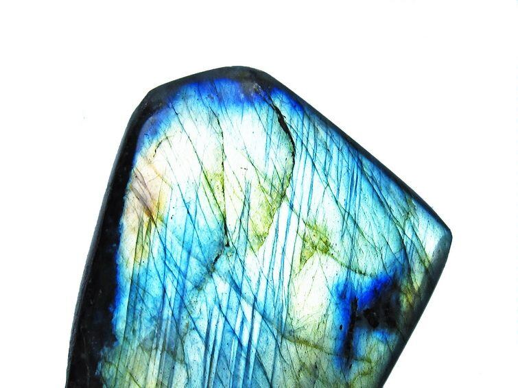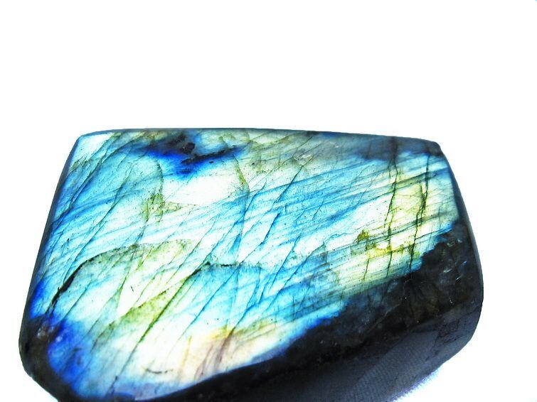 見る角度によって変化する「ラブラドレッセンス」は、神秘的な輝きと幻想的な色彩とが垣間見れる非常に美しい石です。