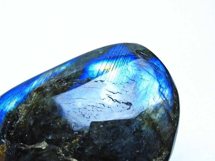 見る角度によって変化する「ラブラドレッセンス」は、神秘的な輝きと幻想的な色彩とが垣間見れる非常に美しい石です。