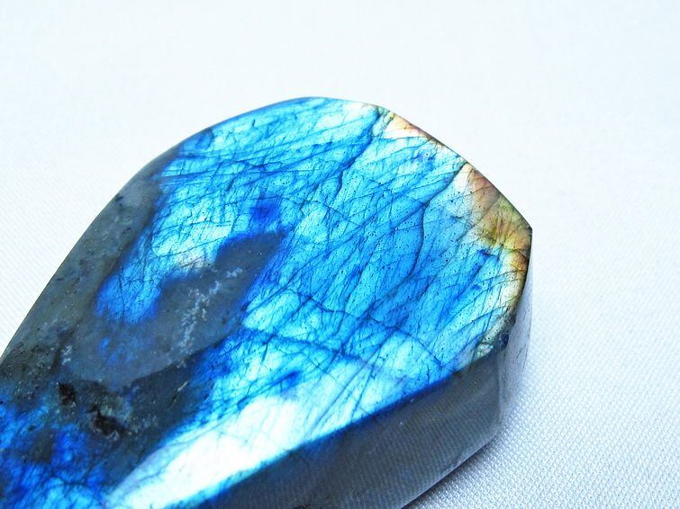 見る角度によって変化する「ラブラドレッセンス」は、神秘的な輝きと幻想的な色彩とが垣間見れる非常に美しい石です。