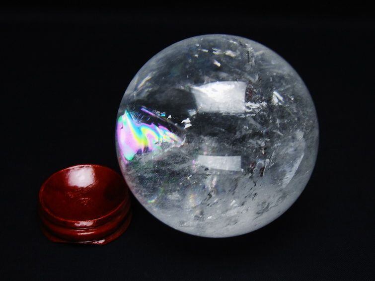 水晶 丸玉 虹入り 69mm スフィア 置物 水晶玉 一点物 151-8754
