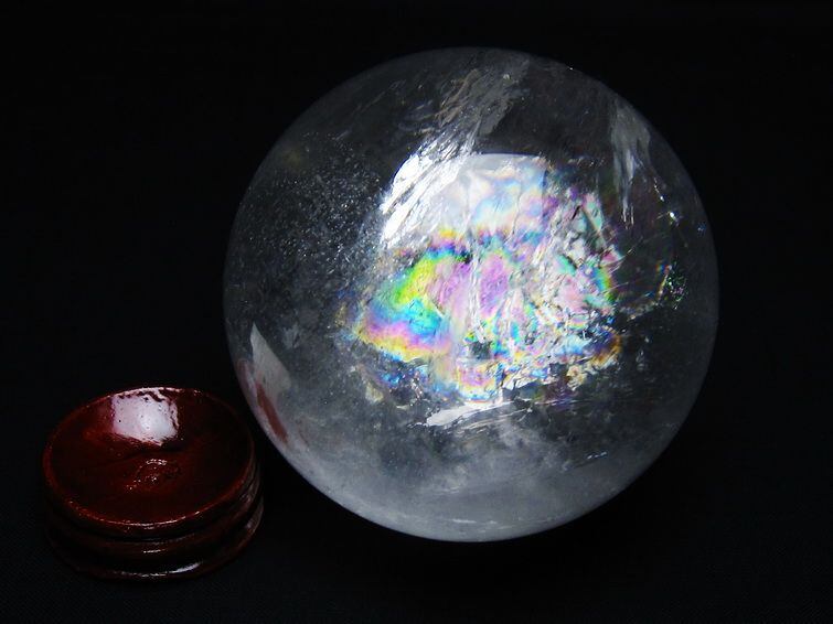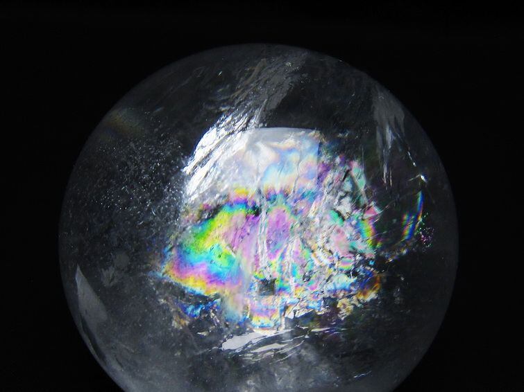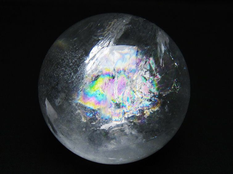 水晶 丸玉 虹入り 74mm スフィア 置物 水晶玉 一点物 151-8809