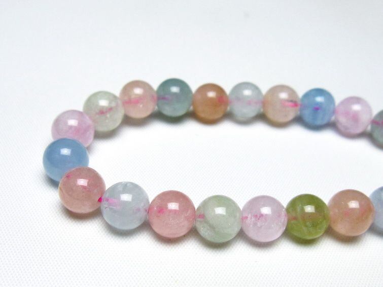 ミックスカラーベリル ブレスレット 9mm 一点物 メール便可 [M便 1/10] 111-48862