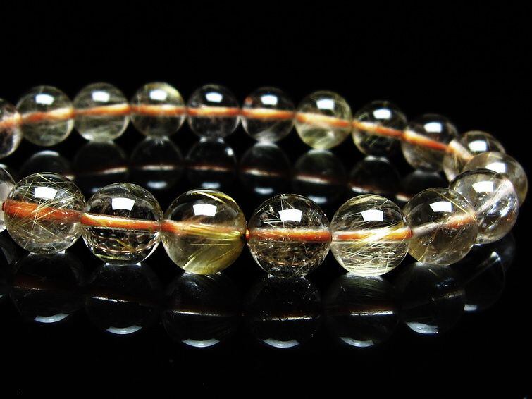 ルチルクォーツ ブレスレット 9mm タイチンルチルクォーツ タイチンルチル 一点物 メール便可 [M便 1/10] 111-48969