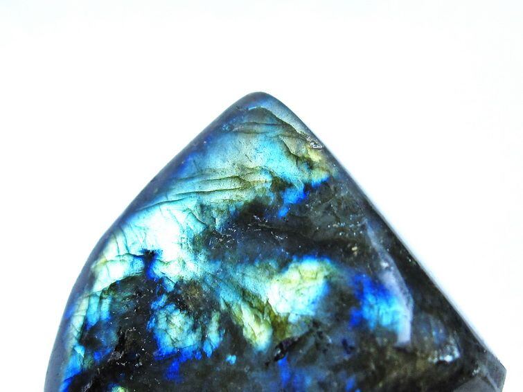 見る角度によって変化する「ラブラドレッセンス」は、神秘的な輝きと幻想的な色彩とが垣間見れる非常に美しい石です。