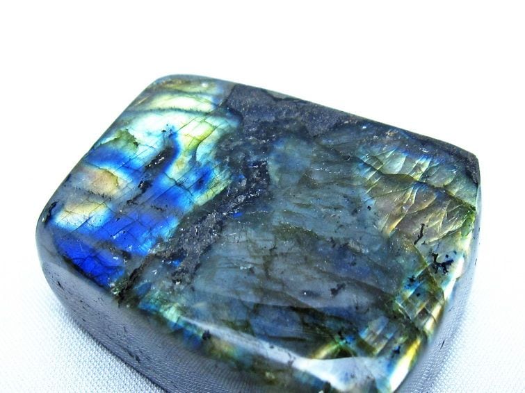 見る角度によって変化する「ラブラドレッセンス」は、神秘的な輝きと幻想的な色彩とが垣間見れる非常に美しい石です。