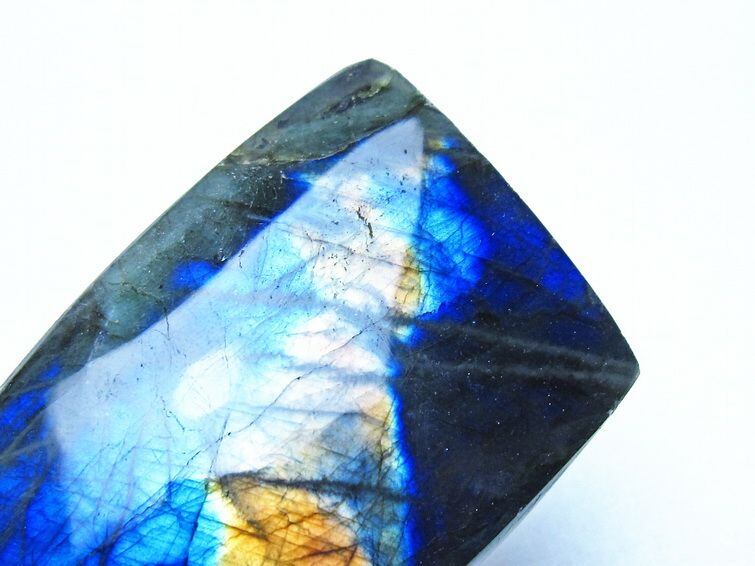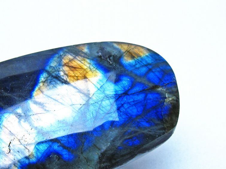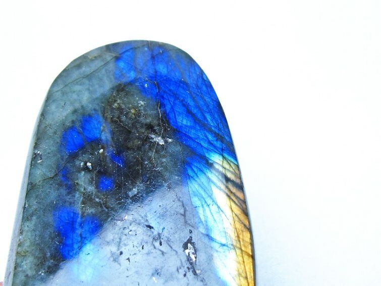 見る角度によって変化する「ラブラドレッセンス」は、神秘的な輝きと幻想的な色彩とが垣間見れる非常に美しい石です。