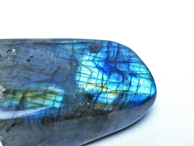 見る角度によって変化する「ラブラドレッセンス」は、神秘的な輝きと幻想的な色彩とが垣間見れる非常に美しい石です。