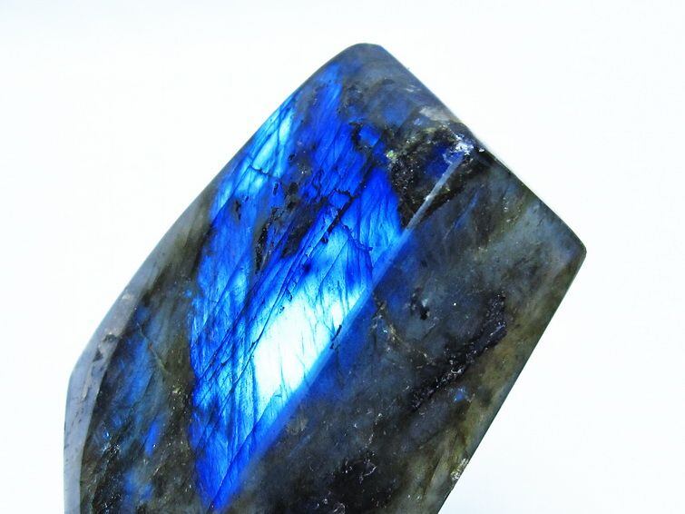 見る角度によって変化する「ラブラドレッセンス」は、神秘的な輝きと幻想的な色彩とが垣間見れる非常に美しい石です。
