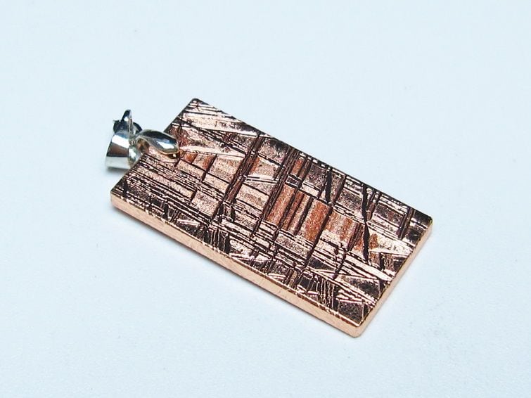 ギベオンの特徴である模様(ウィドマンシュテッテン構造)は、研磨を行い酸につけることでできる模様です。当然ですが、模様に一つとして同じものはなく、またこの模様こそがギベオンが隕石である証なのです。