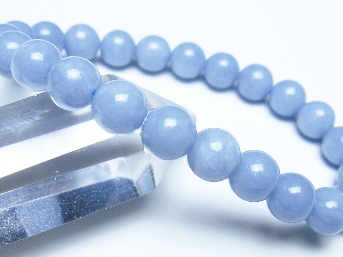 エンジェライトは、ストロンチウムを含むアンハイドライト(硬石膏)の一種で、セレスタイトに近い石であり、硬度も3.5と柔らかい為取り扱いには注意が必要です。名前の由来は、美しい空色が天使を彷彿とされることから付けられたと言われています。「天使の石」とも称され、包み込むような優しい癒しのエネルギーを持つとされます。